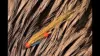 When gammarus shrimps are attacked by a parasitic worm, the parasite is visible from the outside as a red/orange dot.