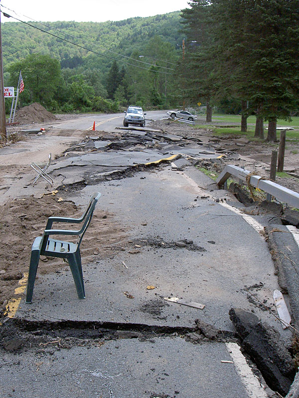 This is a typical roadside where the flooding was the worst in Livingston Manor.