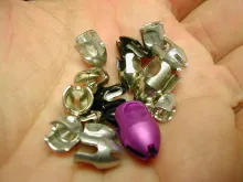 The Kameleon head is quite an intricate construction made by the French manufacturer of cones and beads Andre Bidoz. Its shape allows it to be slipped over the eye of the hook, be turned and then lock in place, adding a really neat head to the fly and at the same time adding weight. Stick on eyes will finish the picture, and using such a head, your can turn any fly into a very different character in seconds. No special tricks are needed, neither is glue, and any fly with a little space behind the eye can be converted.