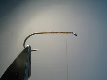 2. Tie in the yarn and turn it over the shank to form a nice tapered under body.