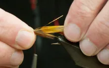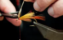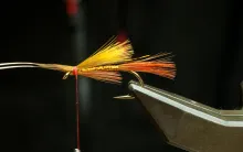 The fly uses feathers from golden pheasant, and reminds me a bit of the Omoe Brush that I tied using yellow golden pheasant feathers in stead of the red ones used by Ken Bonde in his original. That yellow version of his excellent fly has caught me a lot of fish, and the similarities to that fly again gives this one some credit. I even used to tie the yellow Omoe Brush with a roofed hackle technique rather than wrapping it as on the original Brush, so that fly had a pretty large resemblance with the fly at hand. Another fly, which has some similarities to the Talisker Touchdown is the renown Danish sea trout fly Brenda, which I have tied with yellow GP feathers rather than the tan hen feathers prescribed in the pattern description.