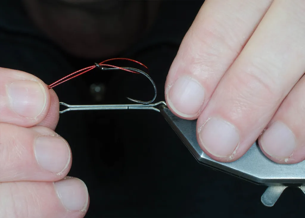 Pass the loop over the hook and tighten the wire.