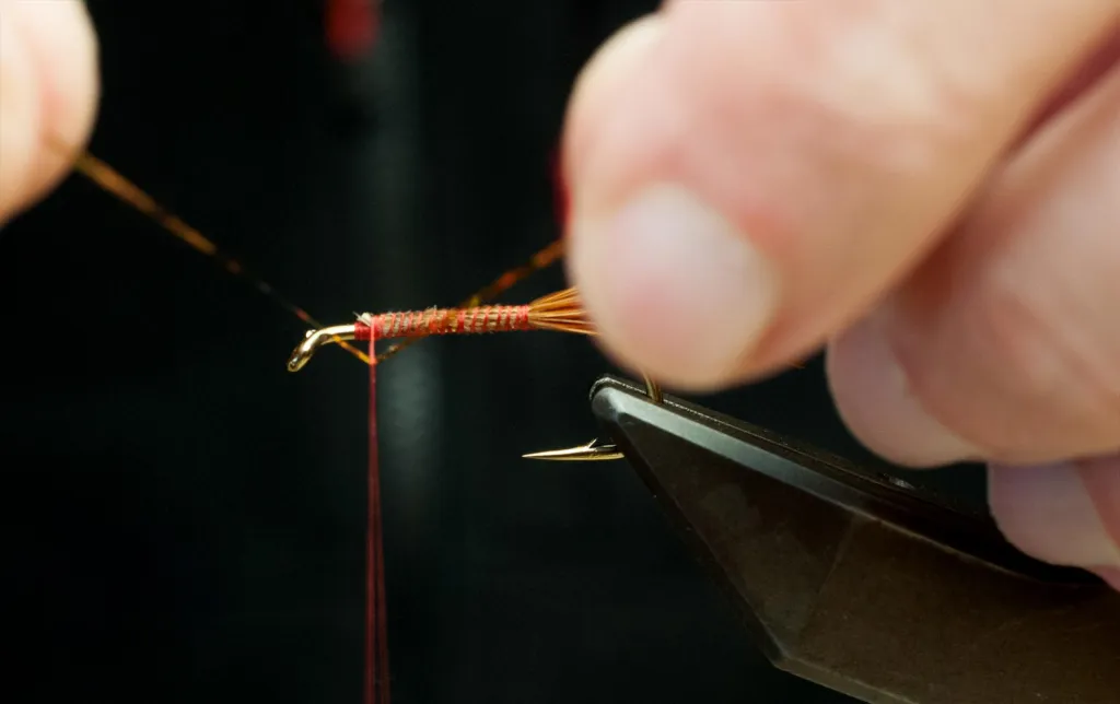 Catch the thead with the flash and pull the flash on top of the hook shank
